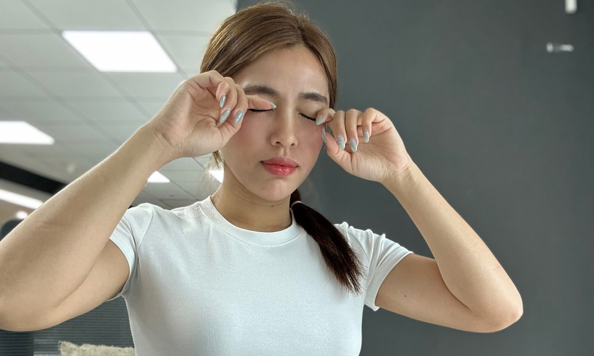 Massage nhẹ nhàng quanh mắt kích thích lưu thông máu. Ảnh: Ngọc Phạm