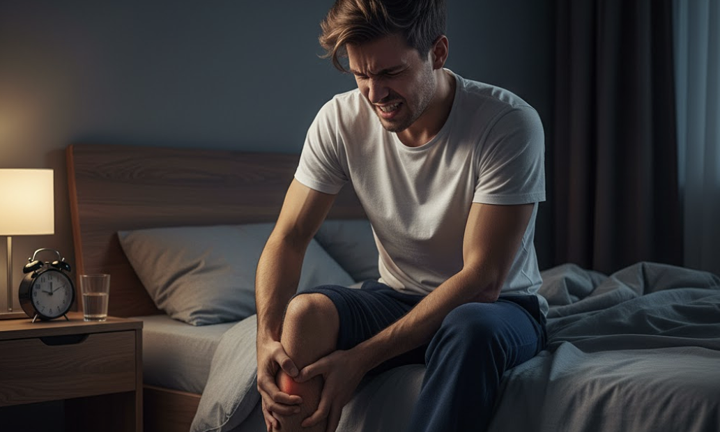Minh hoạ một người bị chuột rút về đêm. Ảnh tạo bởi AI