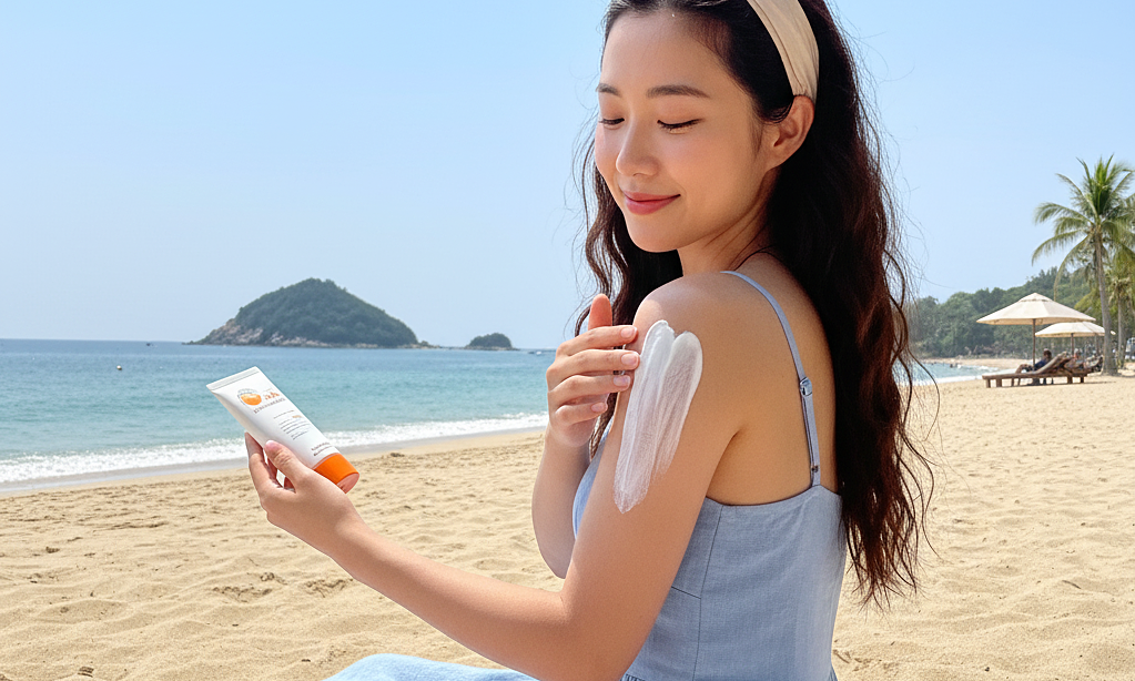 Thoa kem chống nắng để hạn chế nguy cơ ung thư da. Ảnh minh họa tạo bởi AI
