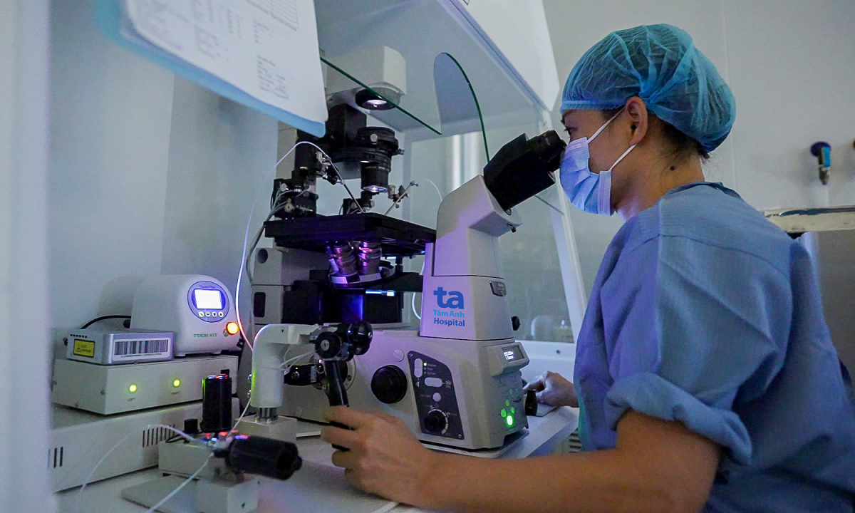 Chuyên viên đang thực hiện sinh thiết phôi. Ảnh: IVF Tâm Anh