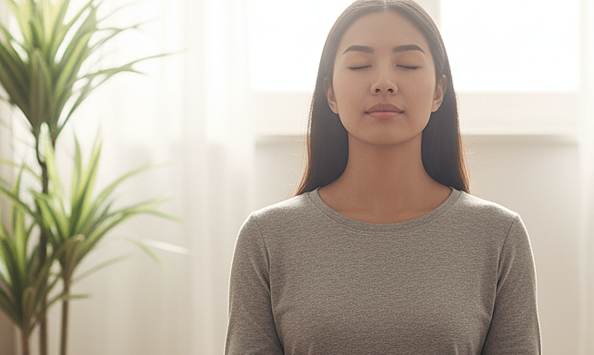 Hít thở sâu, tập trung hơi thở, thời gian hít vào và thở ra bằng nhau, thư giãn cơ góp phần thư giãn tâm trí, giảm căng thẳng.