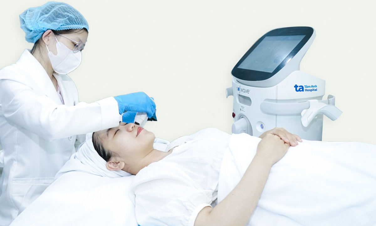 Bác sĩ Linh sử dụng công nghệ SUPERB để se khít lỗ chân lông cho một phụ nữ. Ảnh minh họa: Bệnh viện Đa khoa Tâm Anh