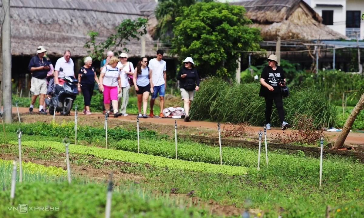 Du khách quốc tế tham quan làng rau Trà Quế. Ảnh: Đắc Thành