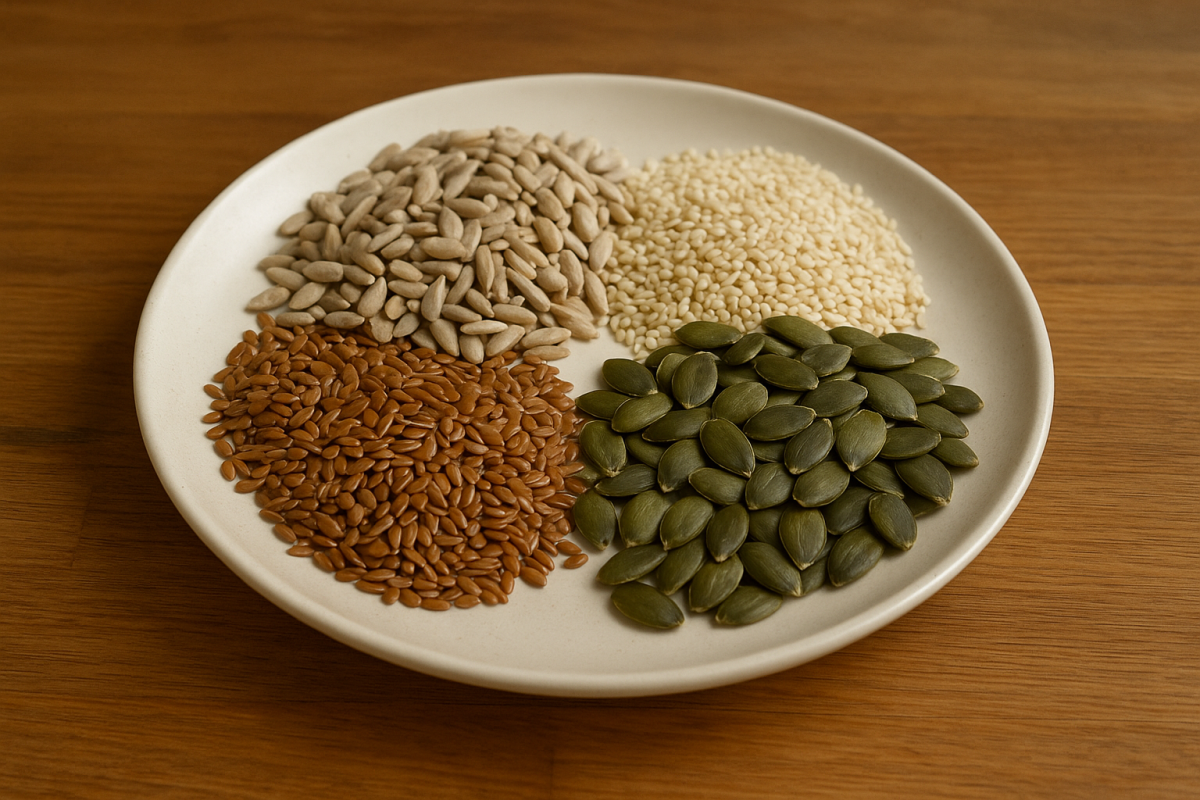 Phụ nữ ăn hạt mè, bí ngô, hạt lanh có thể cân bằng hormone, tốt cho tiêu hóa và tăng cường hệ miễn dịch.