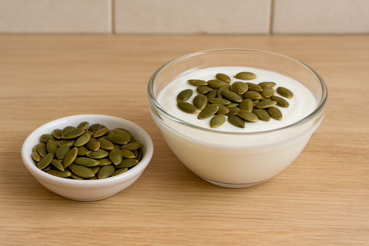 Hạt bí ngô cũng có chất béo lành mạnh, chất chống oxy hóa góp phần cải thiện kết cấu da, giảm viêm, tăng cường miễn dịch, giúp tóc mọc nhanh. Phái đẹp nên ăn thực phẩm này hàng ngày bằng cách rắc lên sữa chua, thêm vào cháo, ăn nắm nhỏ riêng lẻ.