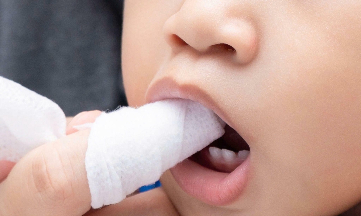 Làm sạch khoang miệng giúp giảm cặn sữa và vi khuẩn tích tụ trong miệng của trẻ sơ sinh. Ảnh: Nam Dược