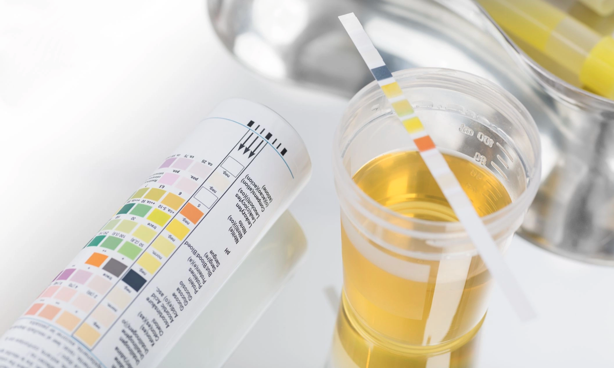 Xét nghiệm que nhúng phân tích nước tiểu giúp đánh giá nồng độ của protein và máu trong nước tiểu. Ảnh: Very Well Health