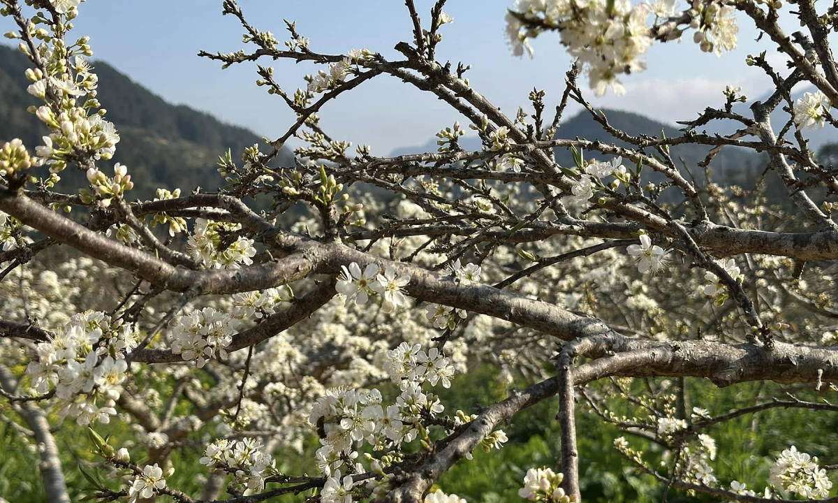 Cận cảnh hoa mận nở rộ ở Bắc Hà. Ảnh: Diep Tran