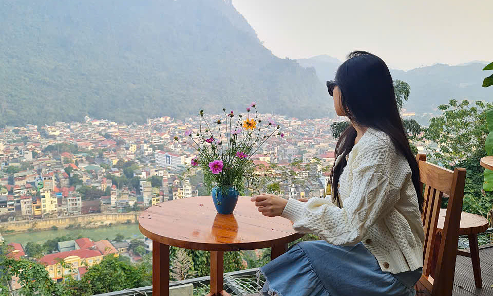 Cà phê ngắm cảnh thành phố từ núi Cấm. Ảnh: NVCC