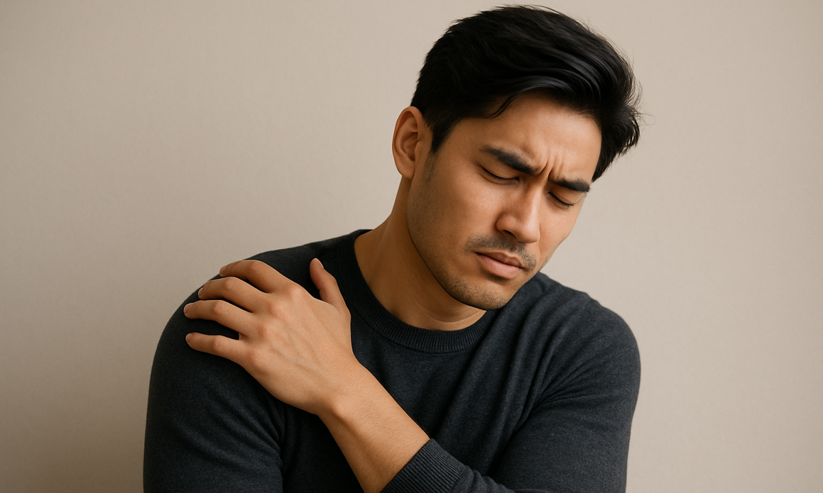Cơn đau ngực lan ra cánh tay có thể là dấu hiệu cảnh báo nhồi máu cơ tim. Ảnh minh hoạ được tạo bởi AI
