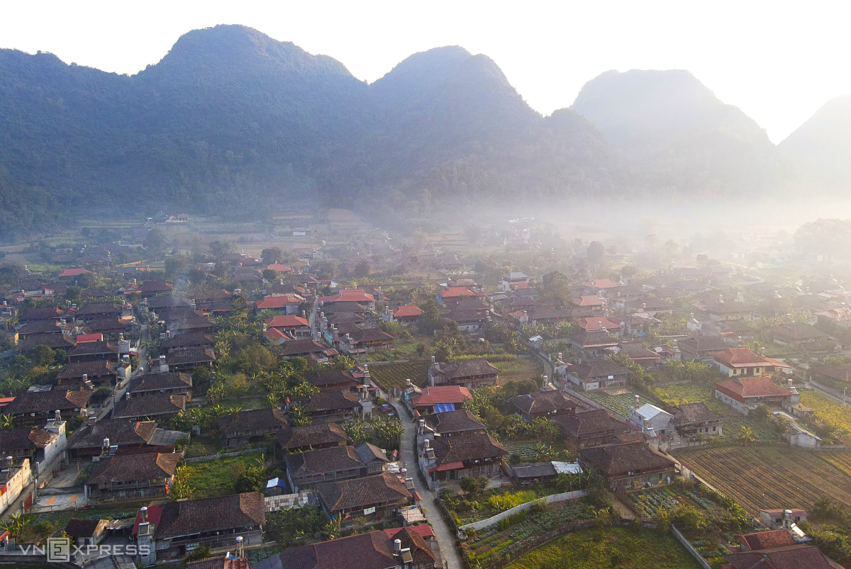 Khu bảo tồn làng nhà sàn dân tộc sinh thái Thái Hải là làng du lịch đầu tiên của Việt Nam nhận danh hiệu từ UN Tourism, năm 2022. Thái Hải nằm trên diện tích hơn 70 ha, được xây dựng từ một vùng đất cằn cỗi, chỉ toàn cỏ cây hoang dại, thành không gian sinh thái bảo tồn những nét đẹp văn hoá truyền thống đồng bào dân tộc Tày. Hơn 30 nhà sàn có tuổi đời hàng trăm năm được phục dựng nguyên bản để bảo tồn. Xung quanh nhà sàn là khung cảnh đồi núi, không gian yên tĩnh. Ảnh: Thai Hai Ethnic Village