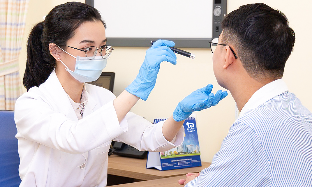 Bác sĩ Vy khám da cho người bệnh. Ảnh minh họa: Phòng khám Đa khoa Tâm Anh Quận 7
