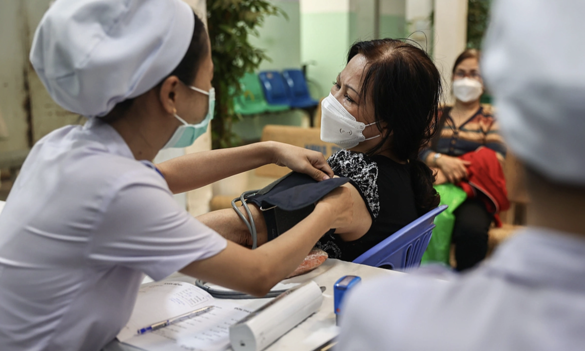 Đo huyết áp cho bệnh nhân tại bệnh viện. Ảnh: Quỳnh Trần