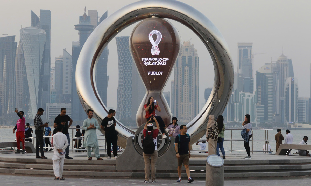 Đồng hồ đếm ngược World Cup 2022 ngày 12/10/2022 tại Doha, Qatar. Ảnh: Reuters