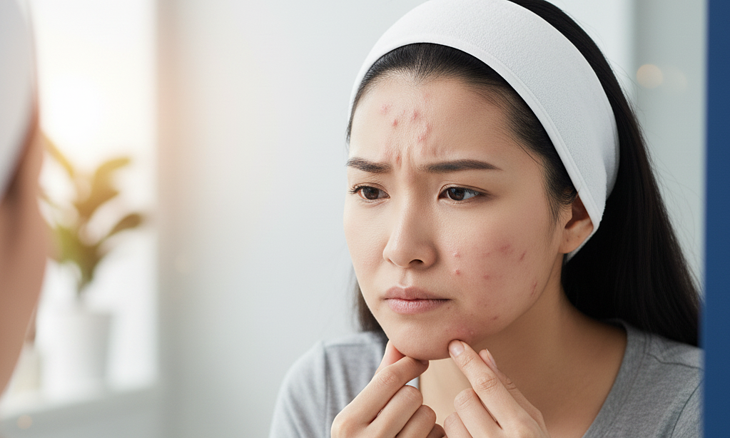 Nặn mụn không đúng cách khiến da dễ bị lão hóa. Ảnh được tạo bởi AI