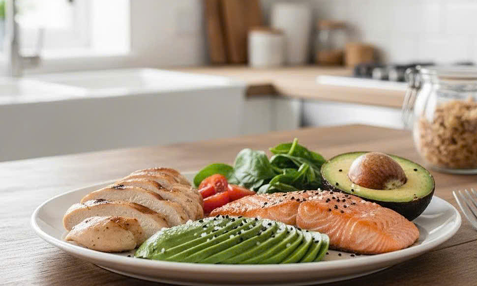 Cá hồi, bơ, thịt gà là những thực phẩm giàu vitamin B6. Ảnh: Trọng Nghĩa