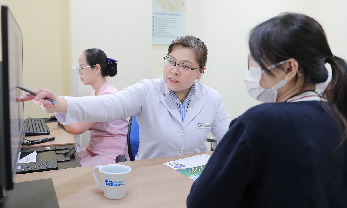 BS.CKII Nguyễn Ngọc Thoại tư vấn tầm soát ung thư cổ tử cung cho phụ nữ 25 tuổi. Ảnh: Trung Vũ
