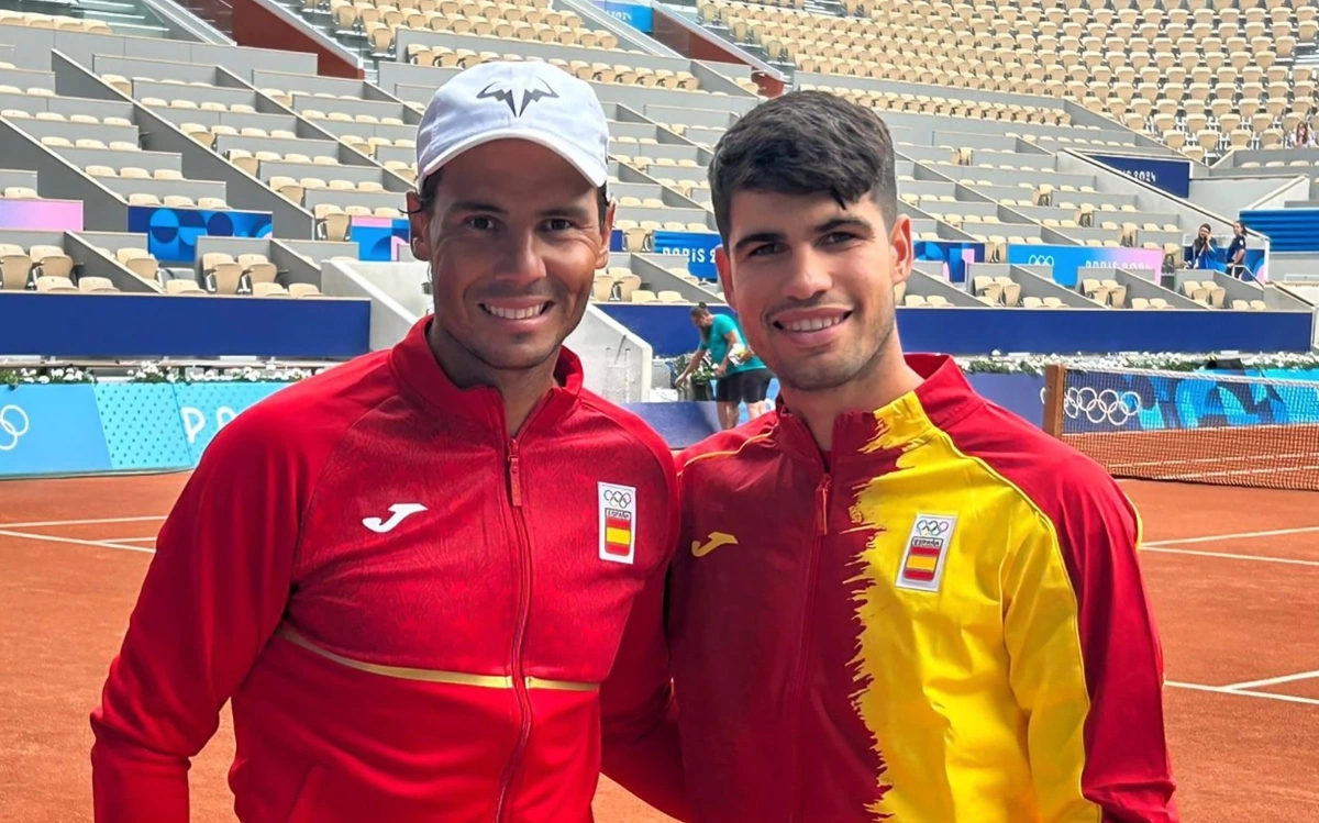 Alcaraz (phải) và Nadal ở Olympic Paris 2024, nơi cả hai đánh đôi cùng nhau trong màu áo Tây Ban Nha. Ảnh: Reuters