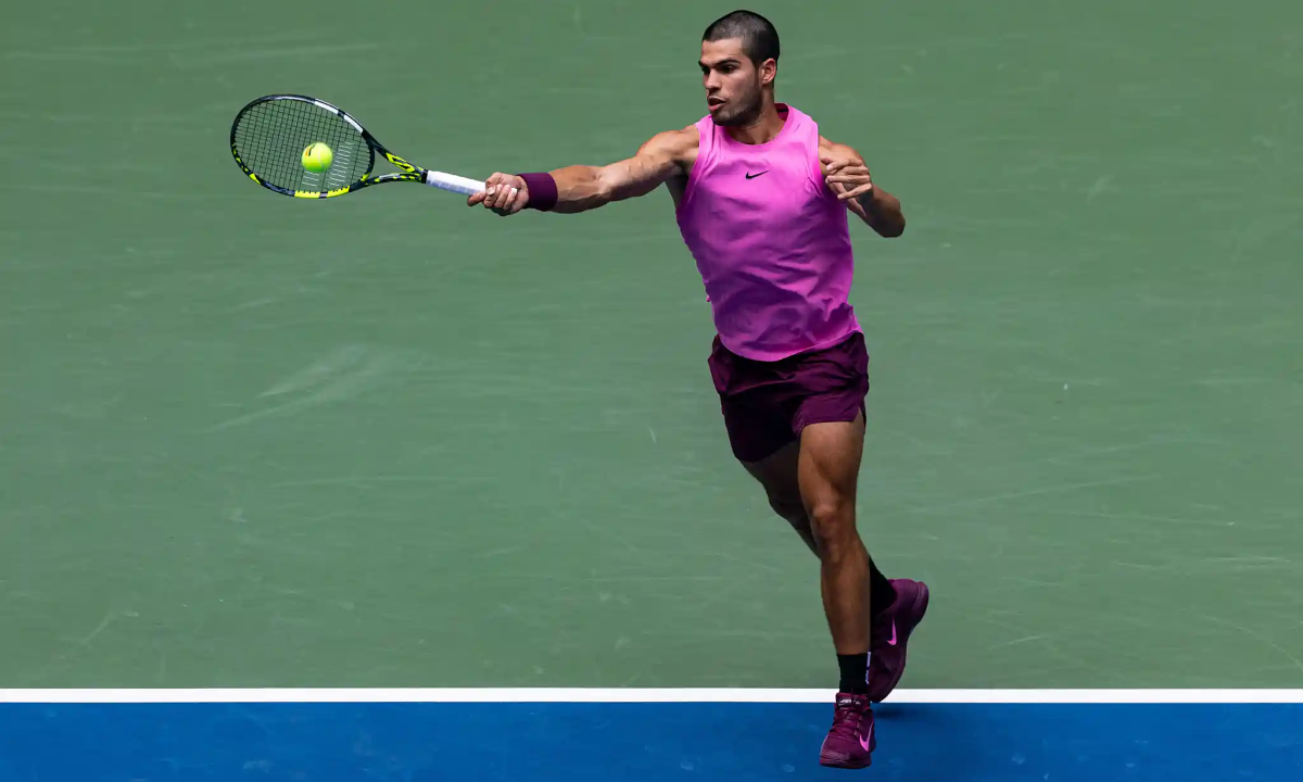 Alcaraz trong trận gặp Lehecka ở tứ kết Mỹ Mở rộng, trên sân Arthur Ashe, New York hôm 2/9. Ảnh: Reuters