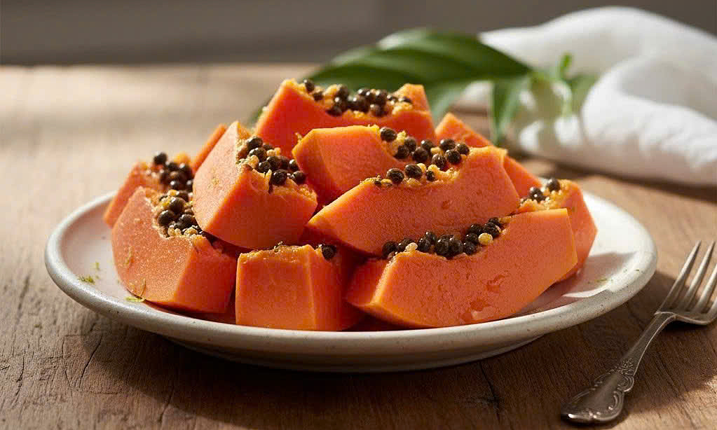 Người bệnh gout có thể ăn đu đủ để bổ sung vitamin C và chất xơ, hỗ trợ tiêu hóa và kiểm soát cân nặng. Ảnh được tạo bởi AI