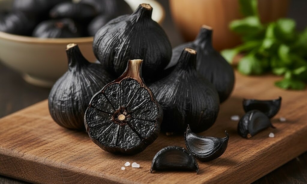 Tỏi đen chứa nhiều hợp chất chống oxy hóa. Ảnh minh họa được tạo bởi AI