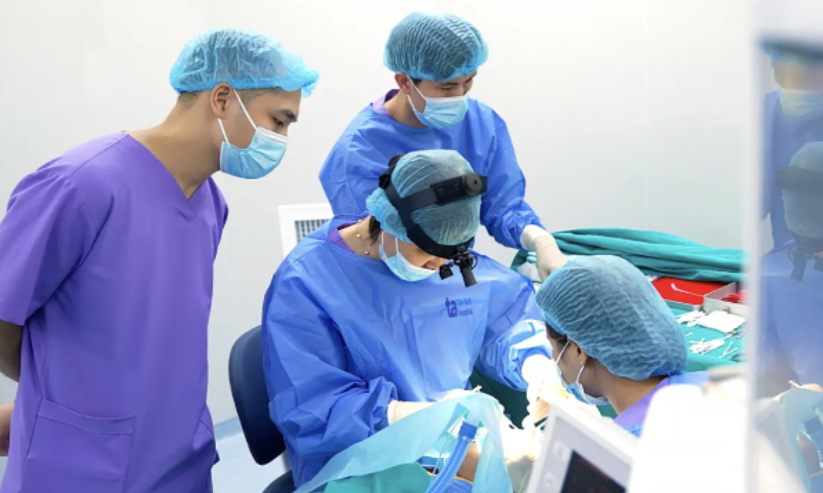 Bác sĩ phẫu thuật điều trị lác cho trẻ em. Ảnh: Bệnh viện Đa khoa Tâm Anh
