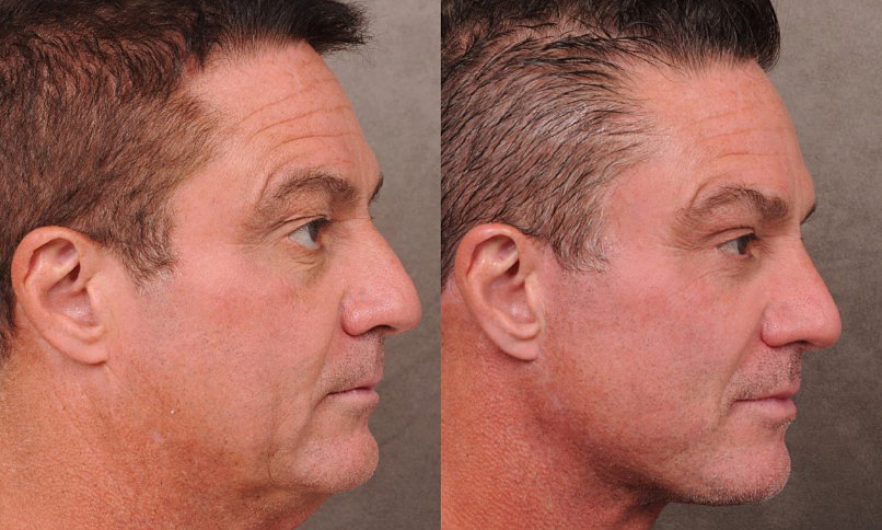 Hình ảnh trước và sau phẫu thuật nâng cổ sẹo ngắn của một bệnh nhân 46 tuổi do bác sĩ Dino Elyassnia cung cấp. Ảnh: Dino Elyassnia