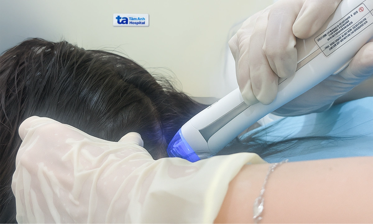 Chị Lan được điều trị tình trạng rụng tóc bằng vi kim RF. Ảnh: Bệnh viện Đa khoa Tâm Anh