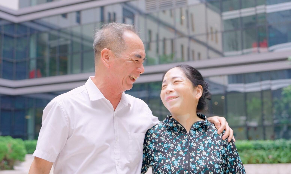 Ông Loan bên bạn đời sau phẫu thuật. Ảnh: NVCC