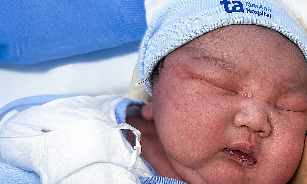 Bé trai con chị Linh vừa chào đời có cân nặng bằng trẻ sơ sinh 2-3 tháng tuổi. Ảnh: Bệnh viện Đa khoa Tâm Anh