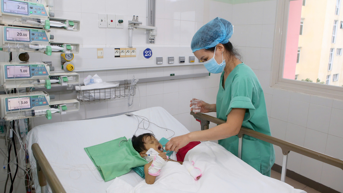 Bé gái khi được chăm sóc sau ca phẫu thuật. Ảnh: Lan Hương