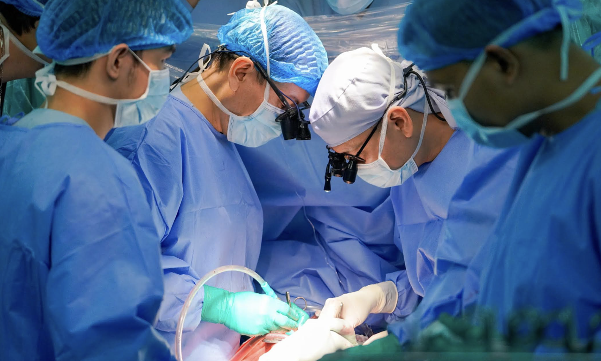 Các bác sĩ thực hiện ghép tim cho bệnh nhi. Ảnh: Bệnh viện cung cấp