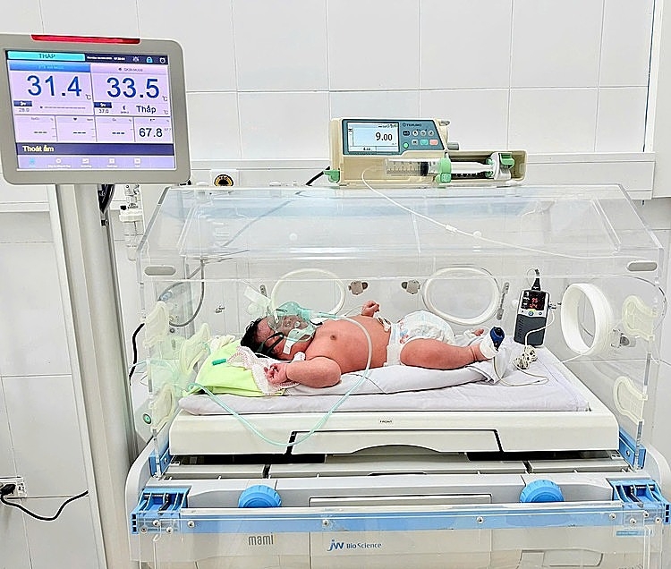 Bệnh nhi được theo dõi sức khỏe sau sinh. Ảnh: Bệnh viện cung cấp