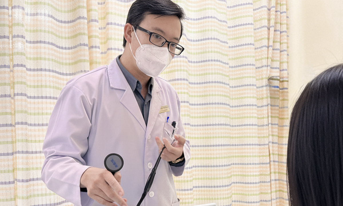 Bác sĩ Thiện tư vấn cho người nhà bệnh nhi. Ảnh: Bệnh viện Đa khoa Tâm Anh