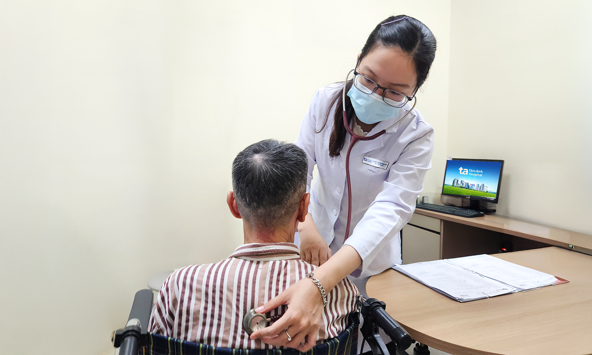 Cụ ông bị viêm phổi, được bác sĩ Bệnh viện Đa khoa Tâm Anh TP HCM thăm khám. Ảnh: Mộc Miên