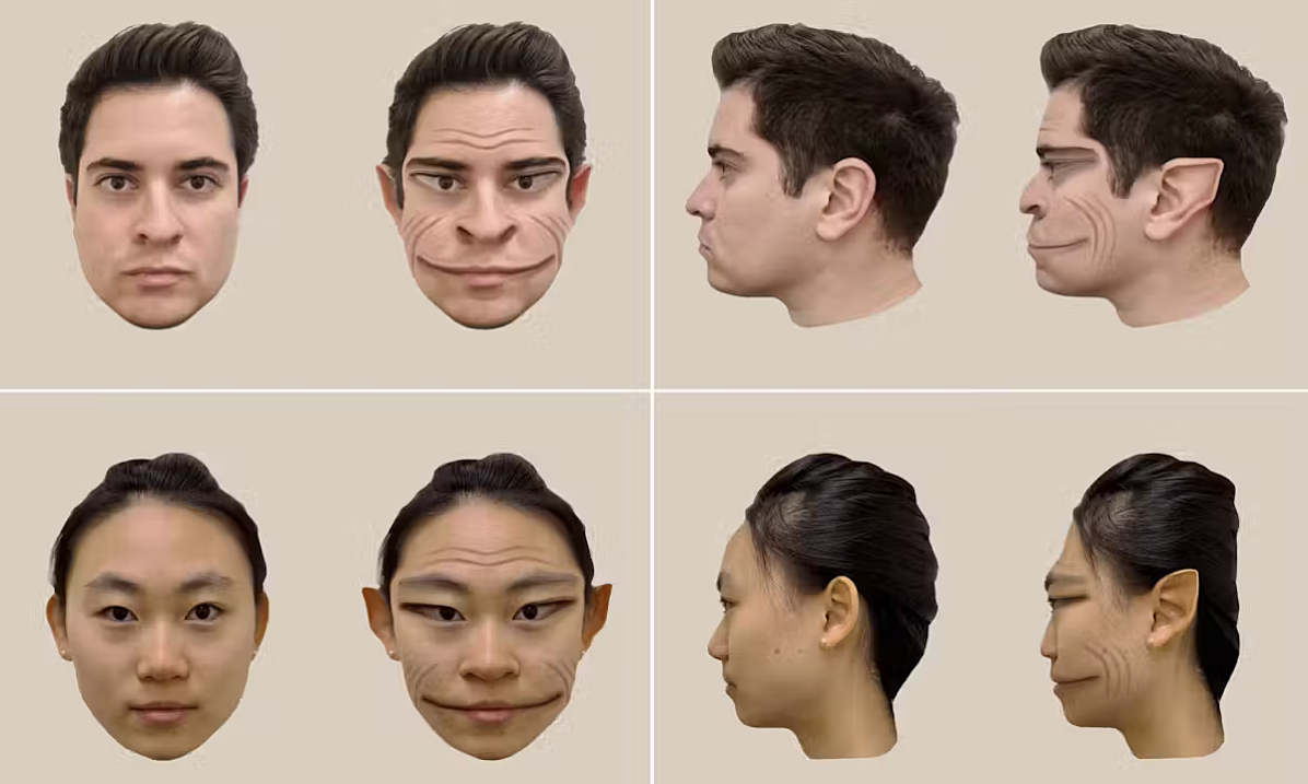 Hình ảnh do máy tính tạo ra về sự biến dạng của khuôn mặt nam (trên) và khuôn mặt nữ (dưới), theo cảm nhận của bệnh nhân trong nghiên cứu về PMO. Ảnh: A. Mello và cộng sự