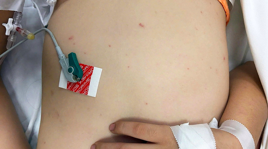Trẻ mắc não mô cầu điều trị tại Bệnh viện TP Thủ Đức, TP HCM. Ảnh:Bệnh viện cung cấp