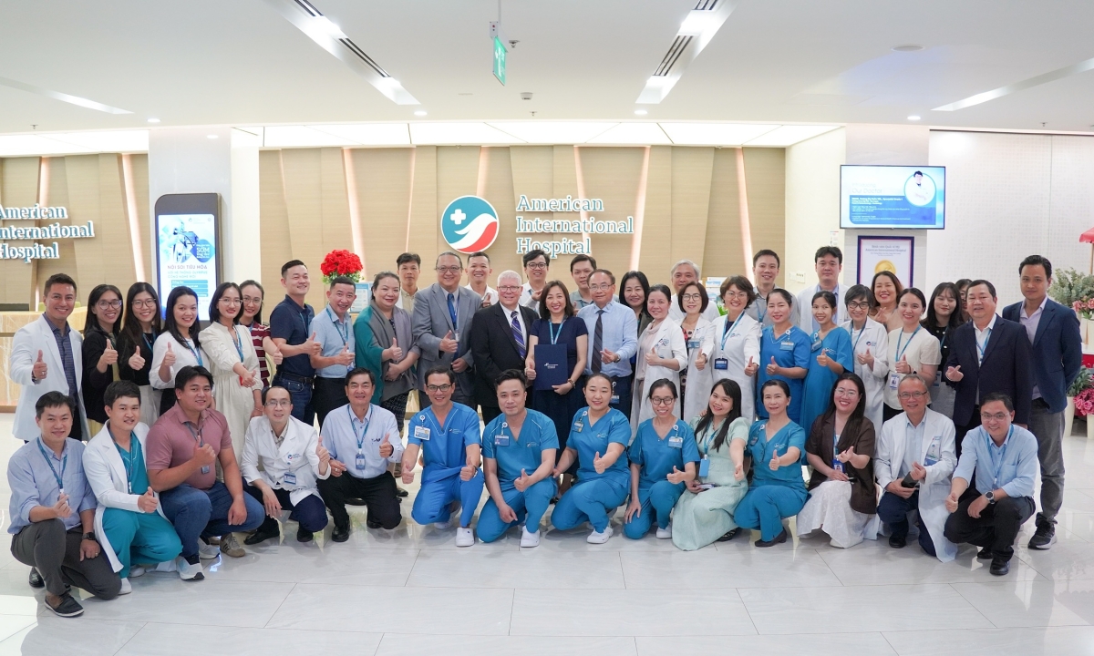 Bệnh viện Quốc tế Mỹ (AIH) đạt chứng nhận con dấu vàng chất lượng JCI lần thứ hai. Ảnh: AIH