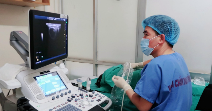 Bác sĩ Bệnh viện Bạch Mai siêu âm cho bệnh nhân. Ảnh: BVCC.