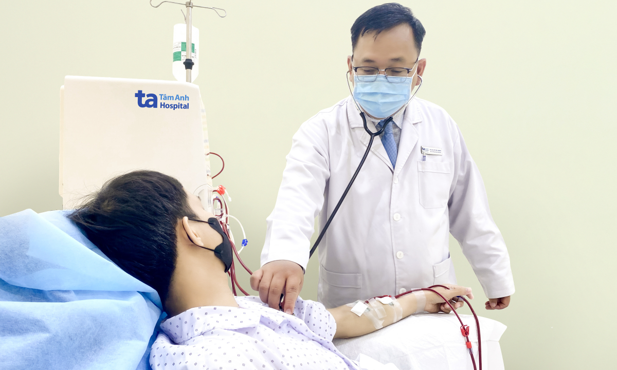 BS.CKII Hồ Tấn Thông khám cho người chạy thận tại Bệnh viện Đa khoa Tâm Anh TP HCM. Ảnh minh hoạ: Bệnh viện cung cấp