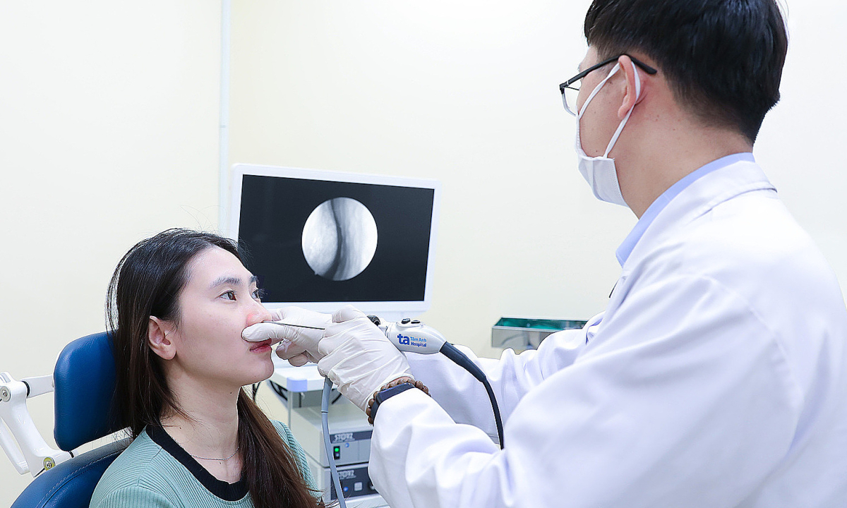 Bác sĩ Phát đang nội soi mũi cho một người bệnh. Ảnh: Phòng khám Đa khoa Tâm Anh Quận 7