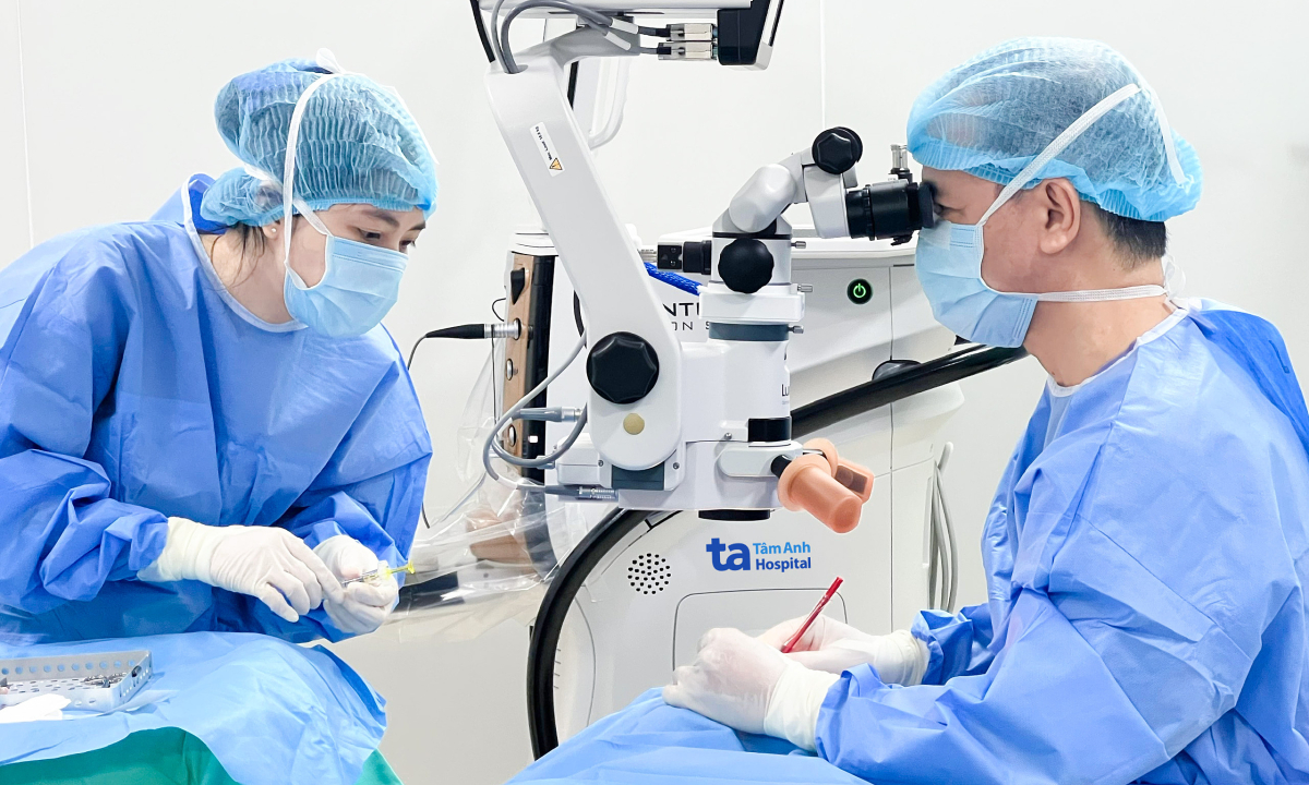 Bác sĩ Nội tiết – Đái tháo đường và Tim mạch đánh giá tình trạng bệnh nền của bệnh nhân trước phẫu thuật, điều trị đục thủy tinh thể hai mắt, tránh nguy cơ mù lòa. Bác sĩ phẫu thuật tán nhuyễn thể thủy tinh bằng siêu âm (phaco), sau đó đặt thấu kính nội nhãn cho cả hai mắt. Hai mắt được mổ cách nhau một tuần để có thời gian hồi phục thị lực. Tái khám sau mổ, thị lực cả hai mắt người bệnh đạt 8/10, nhìn rõ màu sắc tươi sáng, không còn ám vàng.