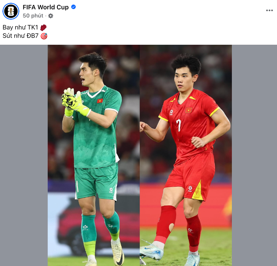 Trên fanpage chính thức, FIFA World Cup đã đăng tải dòng trạng thái: “Bay như TK1, sút như ĐB7”. cách gọi tắt đầy ấn tượng dựa trên tên và số áo của hai nhân vật nổi bật nhất trận đấu là thủ môn Trần Trung Kiên và tiền đạo Nguyễn Đình Bắc.
