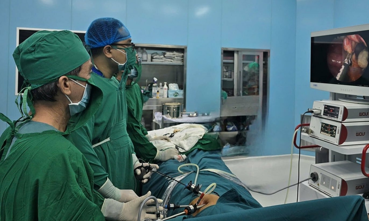 Bác sĩ bệnh viện tuyến cuối ở TP HCM đến phẫu thuật cho người bệnh tại Trung tâm Y tế Quân dân y Côn Đảo, đầu tháng 9. Ảnh: Bệnh viện cung cấp