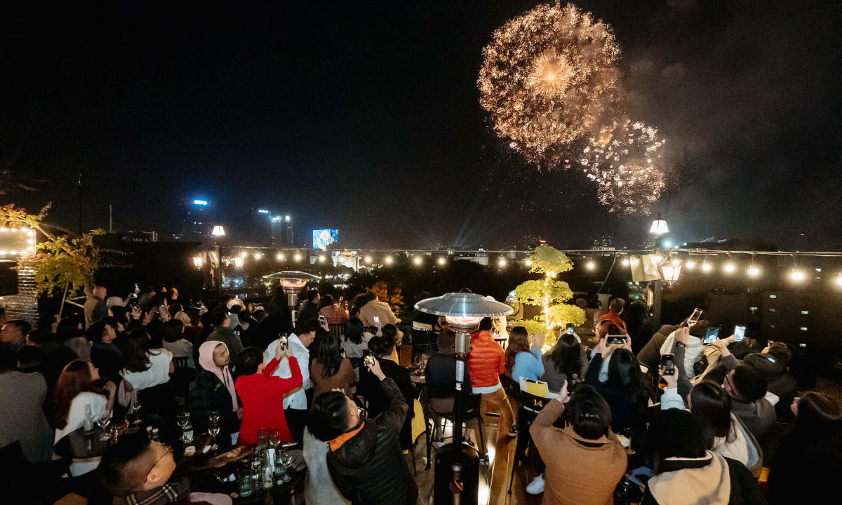 Ngắm pháo hoa hồ Gươm từ Sol Sky Bar. Ảnh: Sol Sky Bar