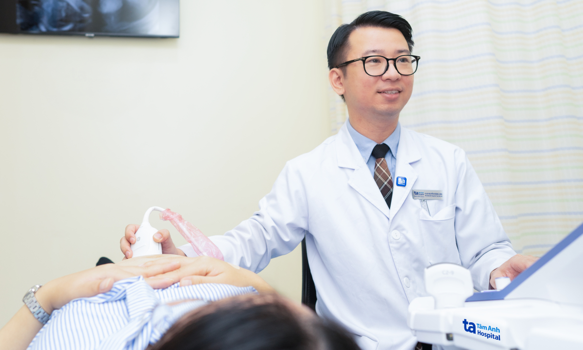 Bác sĩ Long siêu âm cho một thai phụ tại Phòng khám Đa khoa Tâm Anh Quận 7. Ảnh: Thanh Luận