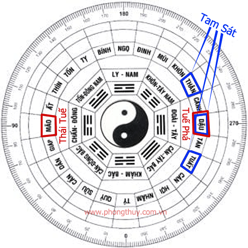 Vào năm, tháng Tỵ, Dậu, Sửu mà gặp Dần, Mão, Thìn là phạm Tam sát.