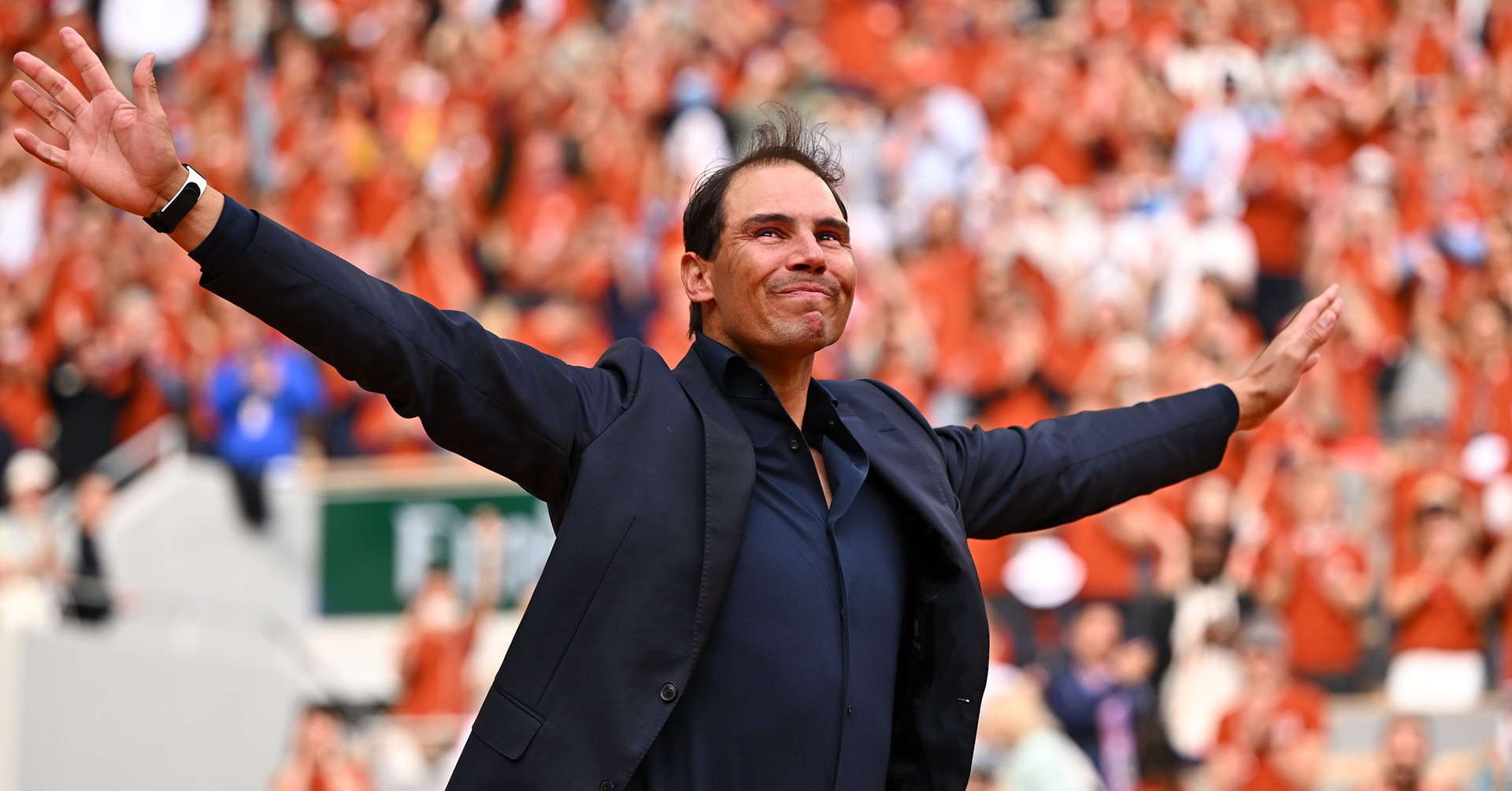 Nadal xuất hiện trong trang phục đen tuyền, hôn gió hướng lên trời, được giới thiệu bởi giọng nói quen thuộc của Marc Maury, theo nghi lễ quen thuộc: 2005, 2006, 2007, 2008, 2010, 2011, 2012… và tiếp tục cho đến đủ 14 danh hiệu.