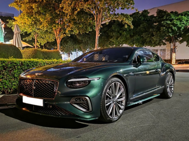 Chiếc coupe siêu sang gây ấn tượng mạnh với lớp sơn ngoại thất màu xanh lục lạ mắt, một tông màu hiếm thấy trên các dòng Bentley trong nước, mang lại vẻ quyền quý nhưng cũng không kém phần cá tính.