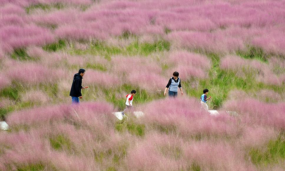 Cảnh đàn hươu Milu băng qua sông tại công viên đất ngập nước ở quận Giang Diên, thành phố Thái Châu, tỉnh Giang Tô, miền Đông Trung Quốc, ngày 17/10. Công viên rộng gần 670 ha, được phục hồi sinh thái qua ba giai đoạn từ năm 2000, với hơn 4,6 triệu cây xanh và 1,8 triệu cây thủy sinh được trồng. Công viên là nơi sinh sống của nhiều loài động vật quý hiếm, bao gồm hươu Milu, loài động vật được bảo vệ cấp quốc gia. Ảnh: Zhou Shegen/Xinhua